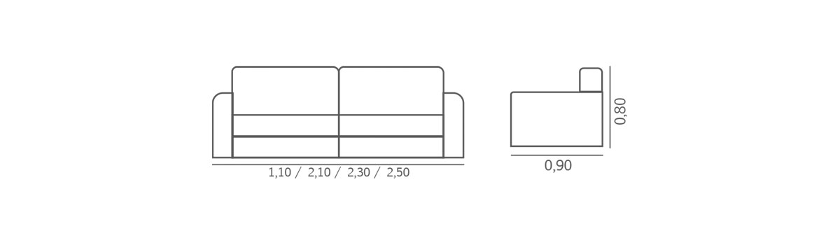 Medidas: Comprimento - 1,10 / 2,10 / 2,30 / 2,50m Altura - 0,80m Profundidade - 0,90m